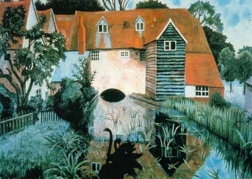 Another who struggled with this dilemma was the under-rated painter Dora Carrington, arguably the most interesting figure associated with the Bloomsbury Group. She was almost an antithesis to Christie and when her life unraveled she committed suicide in 1932. Above is her celebrated painting Tidmarsh (1918), a mill house near Reading that was one of the Bloomsbury Group's favorite retreats in the years after World War I, just as Greenway would be for Christie.