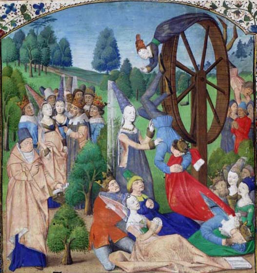 This is a world governed by Dame Fortune, which is another way of saying that in matters of love we are never in control. Not that Machiavelli believed in her any more than those other writers did - or more than classical writers did or Shakespeare and Ben Jonson did - she was useful mostly as a plot device and a metaphor. Machiavelli may have believed that fortune favored the bold (Virgil again), but that's only because the bold were the ones driving the plot. Leonardo seems to have shared that ironic view when he wrote: "When fortune comes, seize her firmly by the forelock, for, I tell you, she is bald at the back."