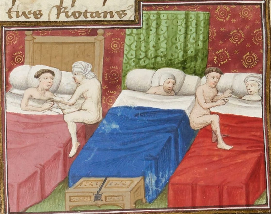 Day III:10 is the story of a 14-year-old Tunisian girl Alibech, who goes into the Egyptian desert to find a way to serve God. After being redirected by several holy men who would rather not be tempted by her beauty, she is referred to a young monk named Rustico who thinks he can beat the temptations of the flesh. He fails: he teaches her a way to serve God by putting the Devil back into Hell (i.e. his penis in her vagina). A lot of sex follows (“the resurrection of the flesh”) until she wears him out, but it all ends happily. And why not? Decameron is about many things, and Day 3 is all about sex without guilt.