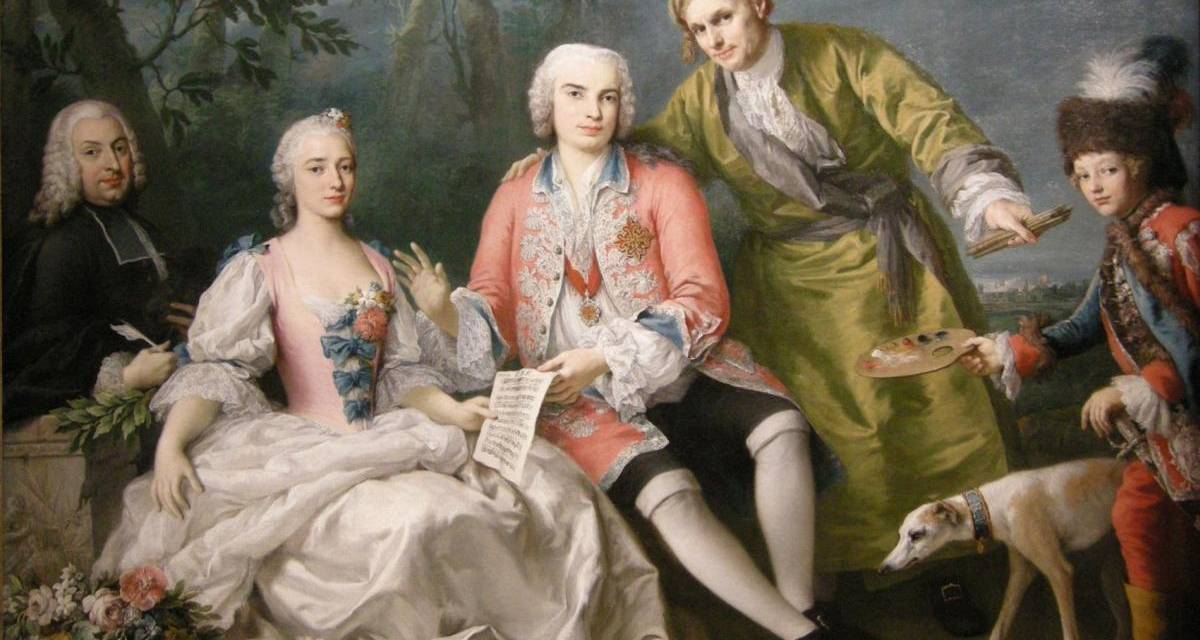 Carlo Broschi Farinelli may well have been the most famous singer of the 18th century and the most famous castrato of all time. The paintings above are by his friend Jacopo Amigoni in Madrid between 1750 and 1752. The painting immediately above shows, from left, Pietro Metastasio (celebrated writer and librettist), Teresa Castellini (prima donna of the Madrid Opera), Farinelli, Amigoni, Farinelli's dog and Farinelli's page boy. Some have speculated that Castellini was the love of his life.
