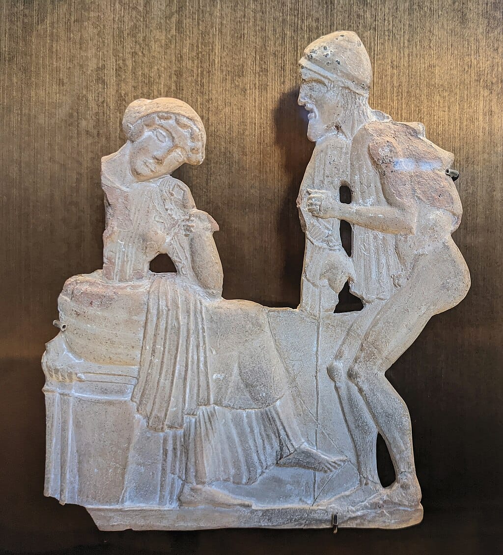 The drawing above is Honoré Daumier's satirical take on Penelope and Odysseus reunited in the matrimonial bed (1842), from the series Histoire ancienne. It reminds me of this version from Milos circa 450 BC, which Daumier had probably seen.