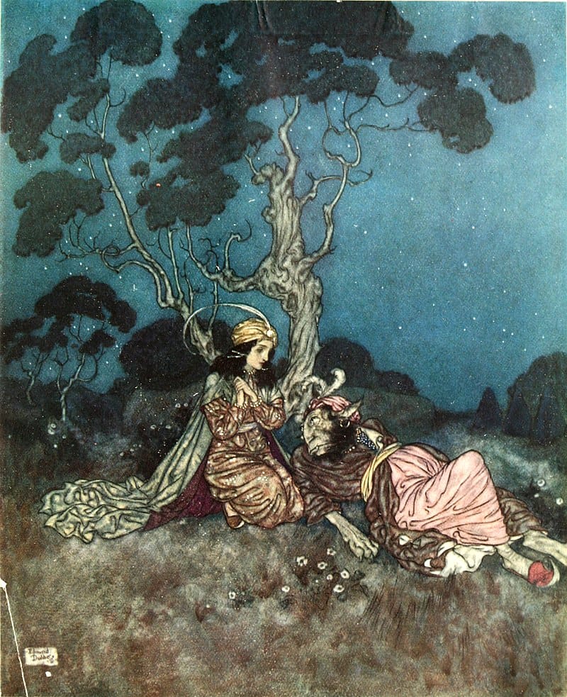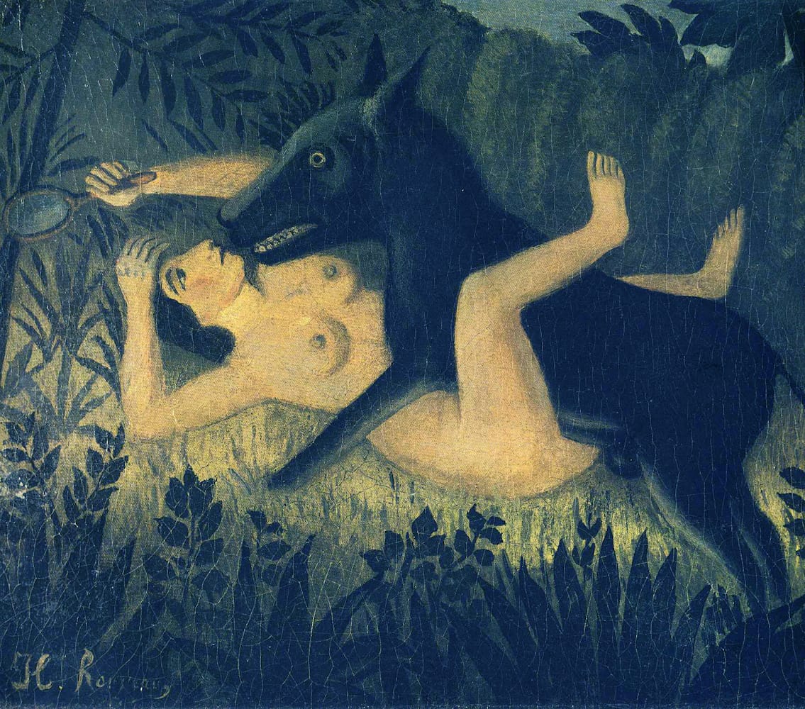Finally, an unorthodox satirical version. This is Henri Rousseau's effort La Belle et la BĂȘte in 1910.