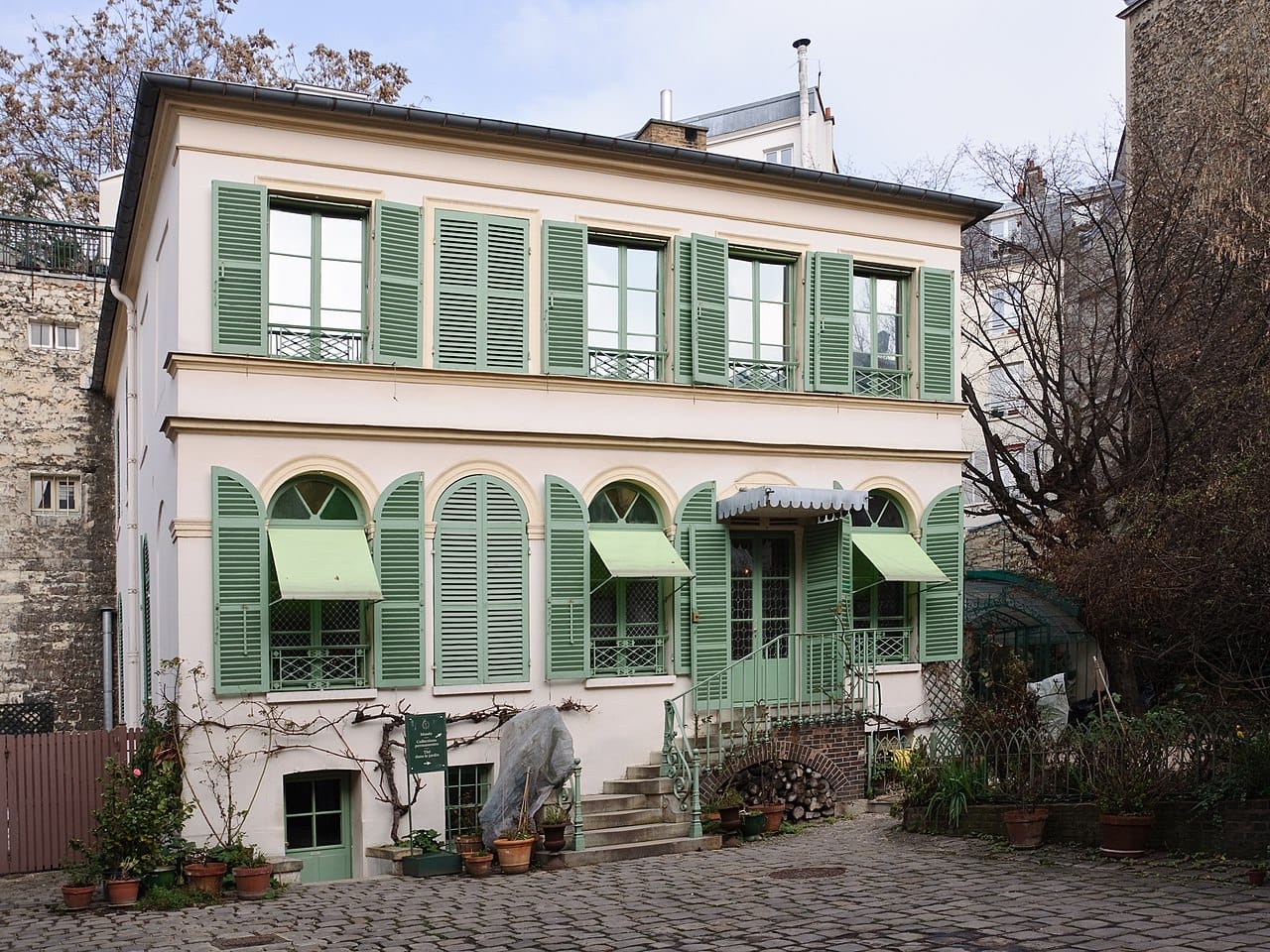 The house at the time belonged to the painter Ary Scheffer, from 1830 until his death in 1858. See one of his paintings here. He hosted Friday evening salons here and in the courtyard for many years.