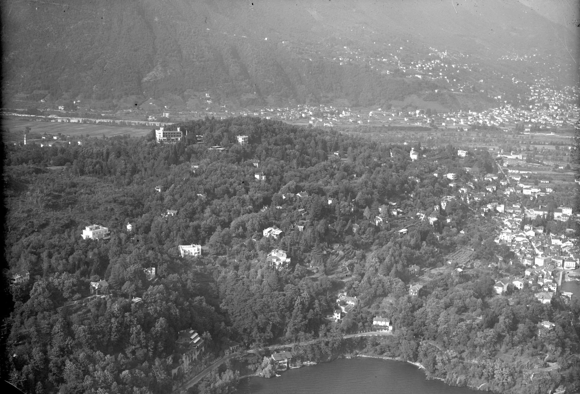 In 1900, "Gusto" Gräser and his brother Karl, along with others, founded Monte Verità, a community on this mountain (shown below in a photo from 1946) above the town of Ascona in Switzerland. He profoundly influenced Hermann Hesse, who underwent a cure for alcoholism there, and the later counterculture movement of the 1960's.