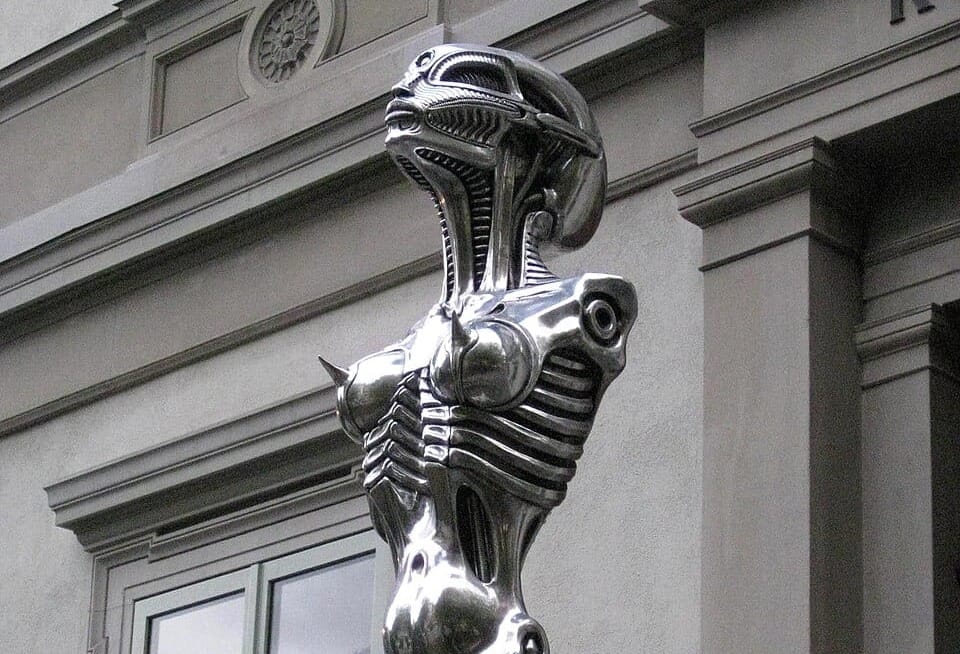 What about rage in newer art? In sculpture, H.R. Giger is effective, but his work seems more like dread than rage. I also find the work of Polish artists like the sculptor Paweł Althamer and the (late) painter Zdzisław Beksiński compelling. The image up top is from Althamer's The Neighbors and it seems designed to thrust the sad and ragged world of the homeless in our faces (which I approve of but many critics do not; they see his work as exploitative). The first image below - by Beksiński - may be untitled but for me it universalizes famine, which I think of as horrific because it's human-caused and deeply personal. Unfortunately, it turns these figures into victims and I think that's less effective than rage-inducing art. The painting below that better captures the horrors of genocide and nuclear war, by crossing into Surrealism. At least, that's my take on them.