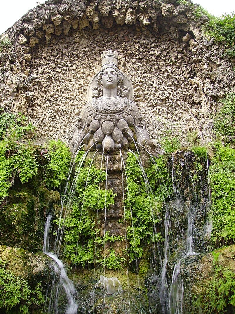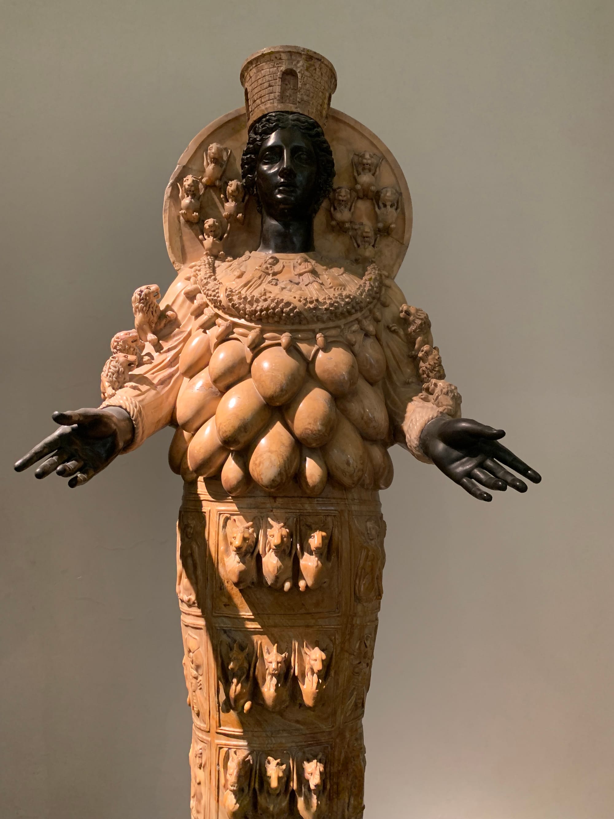 The image above of Artemis of Ephesus is much discussed. Those aren't necessarily breasts; some argue they are the scrotums of bulls, victims of sacrifices. That may well be true, but this is intentionally a fertility image and those can be breasts too: Artemis was a nature goddess, inspired by Cybele, an Anatolian goddess. They in turn inspired many European sculptors in the 1500's, including the well known Fountain of Diana of Ephesus at the Villa d'Este in Tivoli.