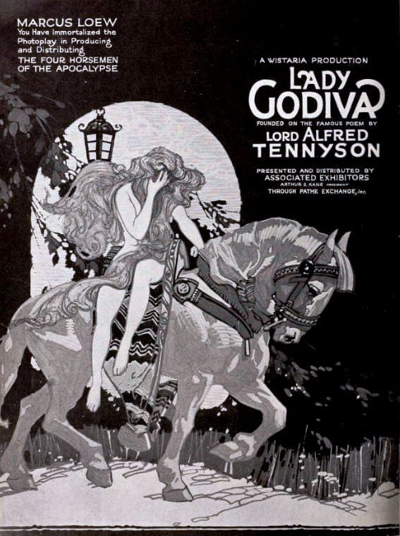 Other film versions include a Hollywood silent film Lady Godiva, (1911) shown immediately below, and a German film Lady Godiva (1921), which was released in the U.S., shown below that.