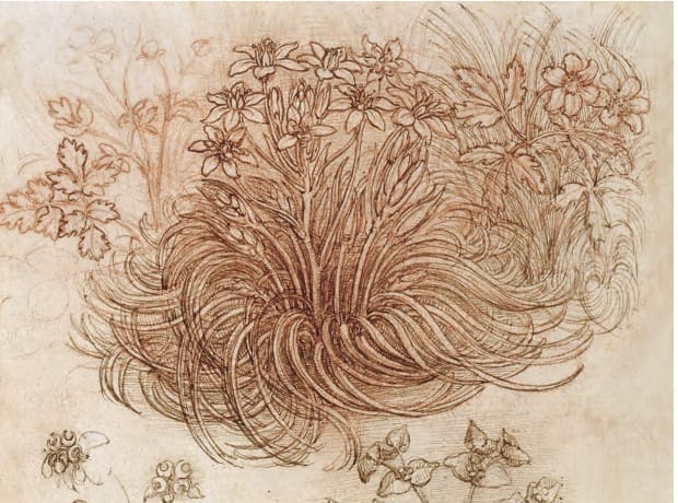 On the basis of this wonderful quote, many have concluded that Leonardo had no sex life. It is much more likely that his "pent-up impulse" got the better of him. The statement has rhetorical flair but little truth to it. Indeed there are sexually feminine allusions to be found in Leonardo's work that are absent in Michelangelo's. Below are two of his drawings of plants in his notebooks that strike me as feminine.