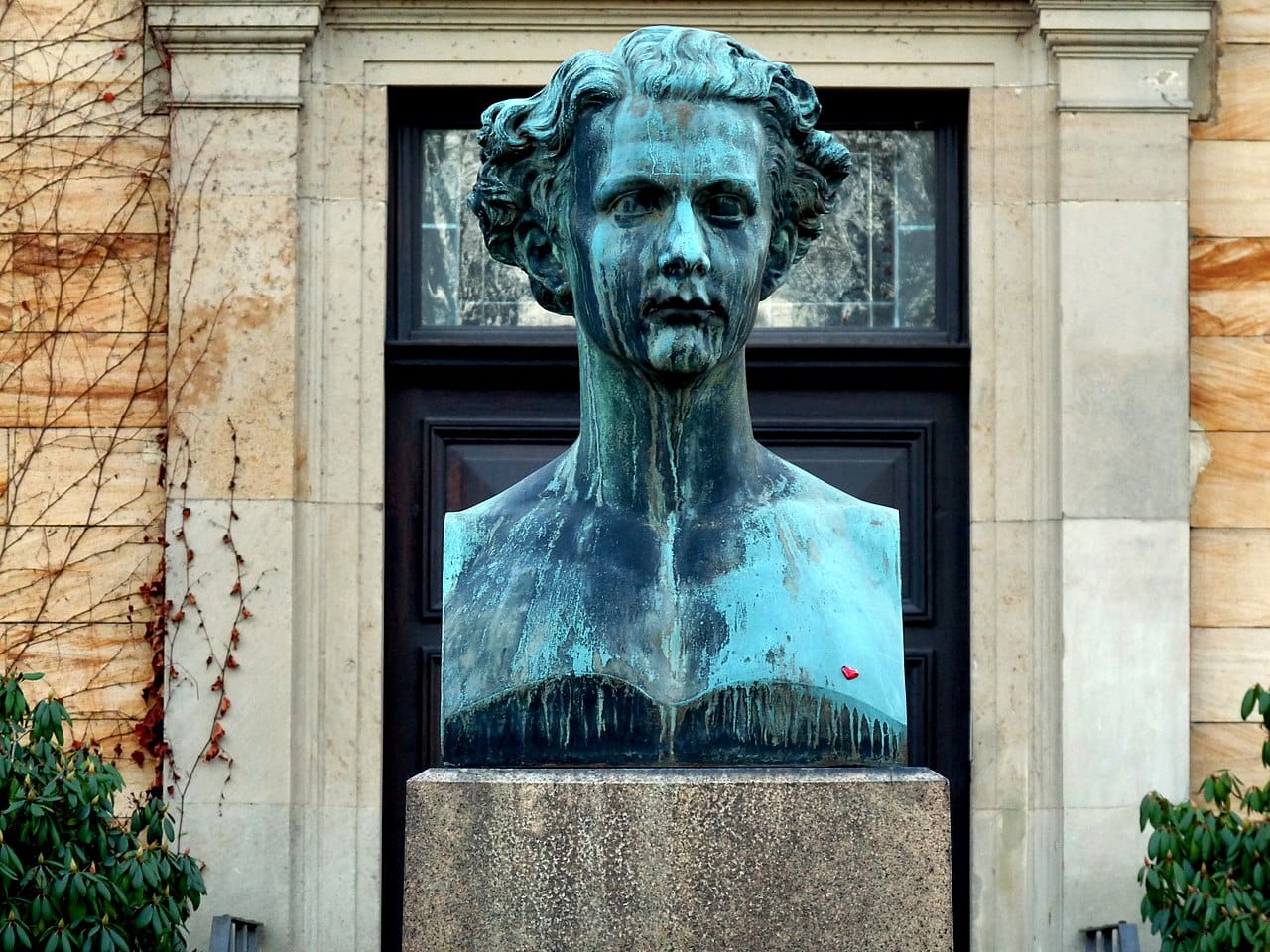 Richard and Cosima Wagner made their home at Wahnfried in Bayreuth, shown above, which was largely funded by Ludwig II, and they are both buried there. There is a statue of Ludwig too (below).