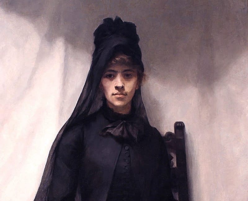 I'm reminded of the painting above by this portrait (cropped) of Polish painter Anna Bilińska, from a few years later. She is in mourning after the death of her father and I find it equally moving.