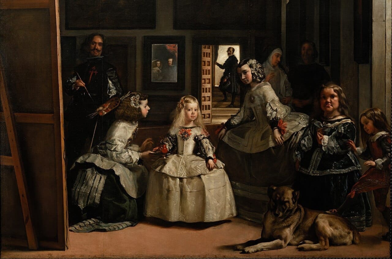 The statues' posture - to me at least - resembles the Infanta Margarita Teresa de Austria in the painting rather than the "maids in waiting," but I quibble... Diego Velásquez' masterpiece of 1656 is in the Prado, and I have cropped it here: