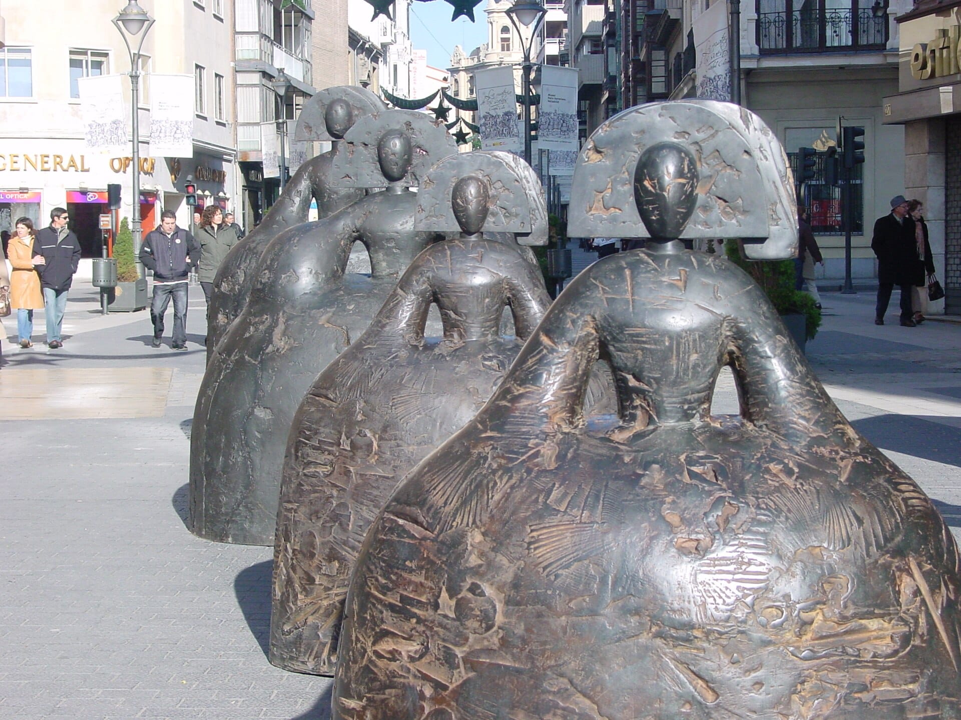 These playful sculptures were inspired by the work of influential Spanish artists Manolo Valdés and, more recently, Antonio Azzato. Their Las Meninas sculptures have been widely displayed all over the world. Below is a display of Valdés in Valladolid in 2006. More here.