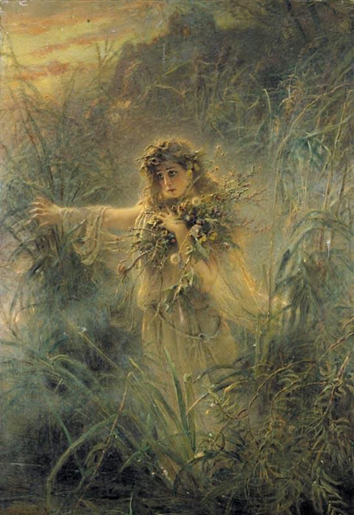 Ophelia became very popular elsewhere in Europe in the 1880's. This is her as a Russian rusalka (a female water spirit):