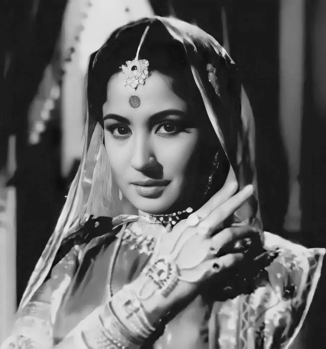 Guru Dutt’s wife, Geeta, sings the famous songs in the film, which are lip synched by Meena Kumari’s character. Like the rich zamindar family in Sahib, Geeta was born into wealth. However, although they had three children, the marriage was unhappy.