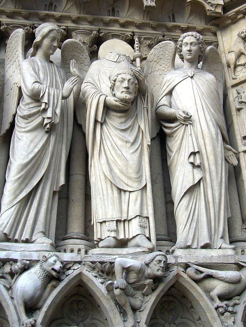 Saint-Denis on Notre Dame holding his head...