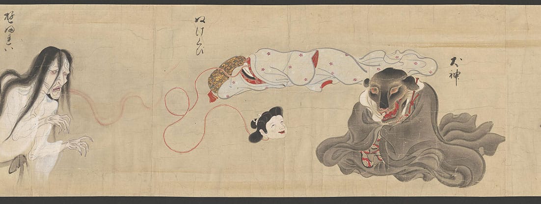 In Japanese yōkai tales about folklore spirits, there are two types of shapeshifters - the Rokurokubi (where the neck stretches) and the Nukekubi (where the head is detached and can fly around). Below are two Rokurokubi by Hokusai and then a Nukekubi.