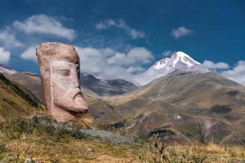 Such giant heads have inspired others in more recent times to create their own. A stand out is Merab Piranishvili in the village of Sno, in the foothills of Georgia's Caucasus mountains. This is one of his giant heads: