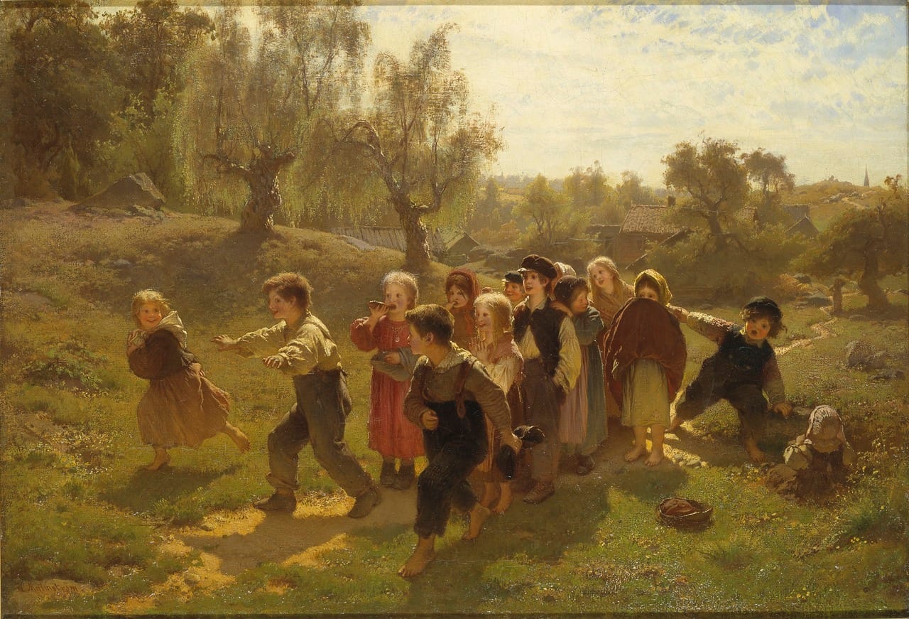 Perhaps this is why childhood as a metaphor became increasingly popular, such as what you find in the many works of Carl Larsson, or the under-rated 19th century Swedish painter August Malmström. The one below translates as Children Playing in the Garden: