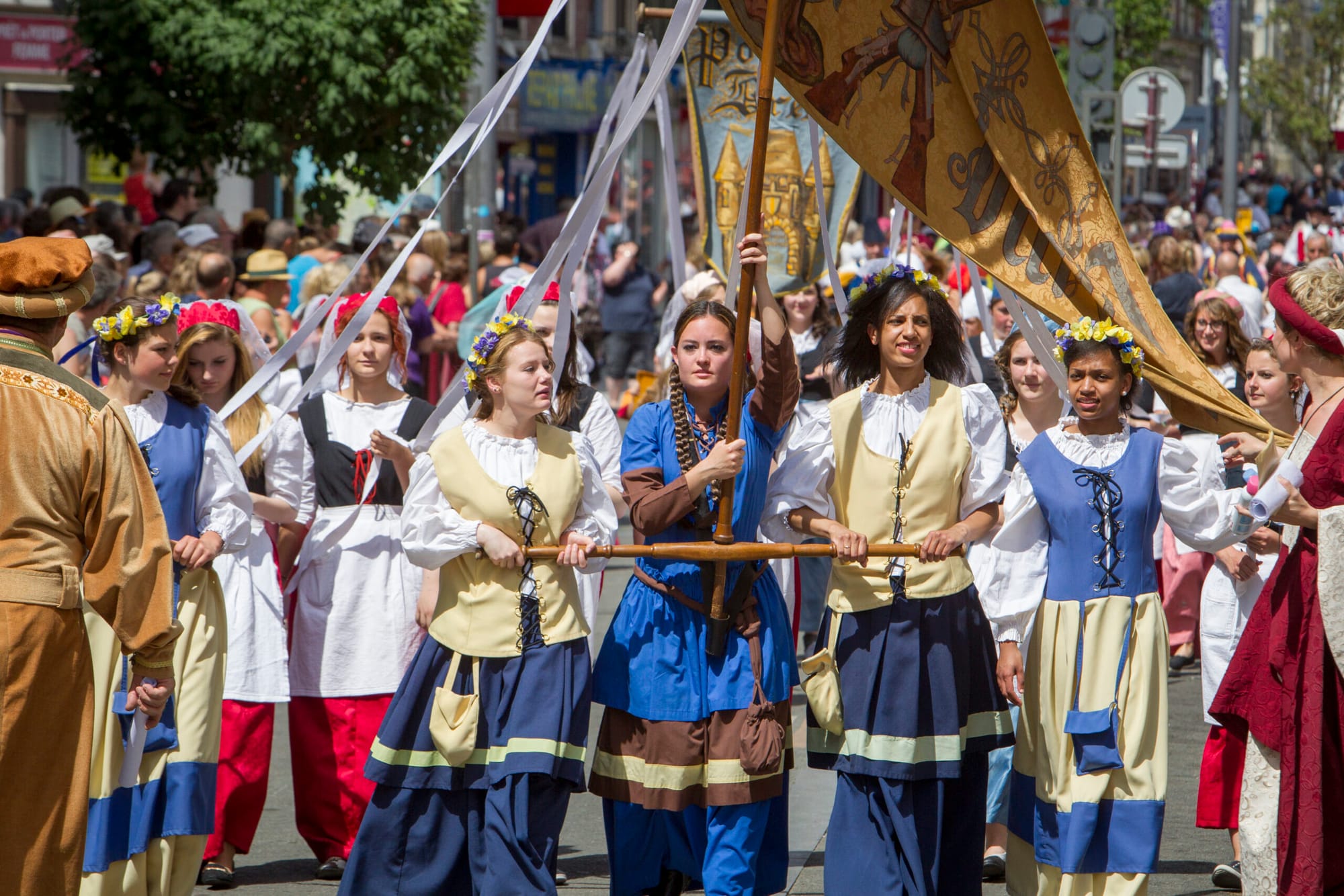 Who knew there were two? Jeanne Hachette (real name Jeanne Laisné) was born more than 20 years after Jeanne d'Arc's death in 1431. She gained fame by inspiring the defenders of her city of Beauvais - especially the women - to resist a attack by the Burgundians, who were allied with the English. Waving her axe (her "hachette") around on the battlements, she helped drive off the invaders and led a sustained defense of the royal city. The siege lasted a month and the Burgundians eventually withdrew. Jeanne was only aged 17 or 18 at the time, so now she is Beauvais' local celebrity with a procession (Fêtes Jeanne Hachette) held every year in her honor at the end of June, led by women of course. It is all rather multicultural and inspiring.