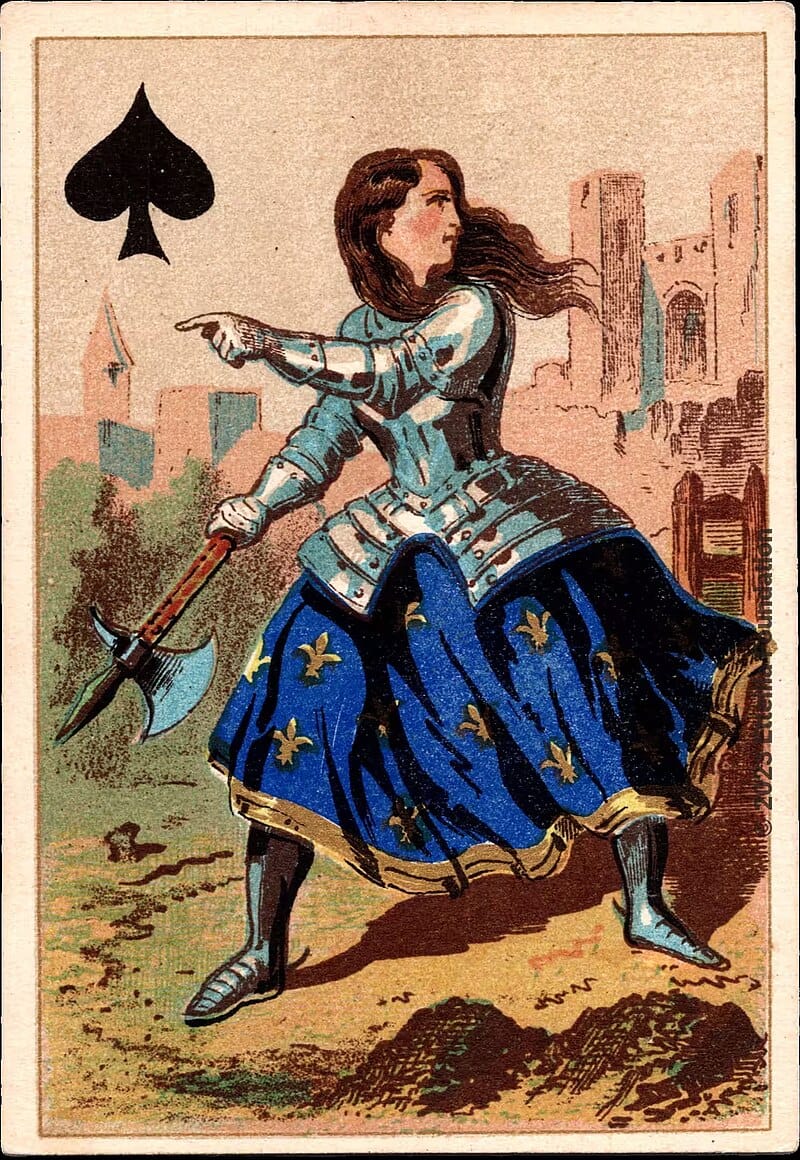 Jeanne Hachette is also the Queen of Spades in a historic card set from 1860. This is the Blue Version (there is also a Red Version).