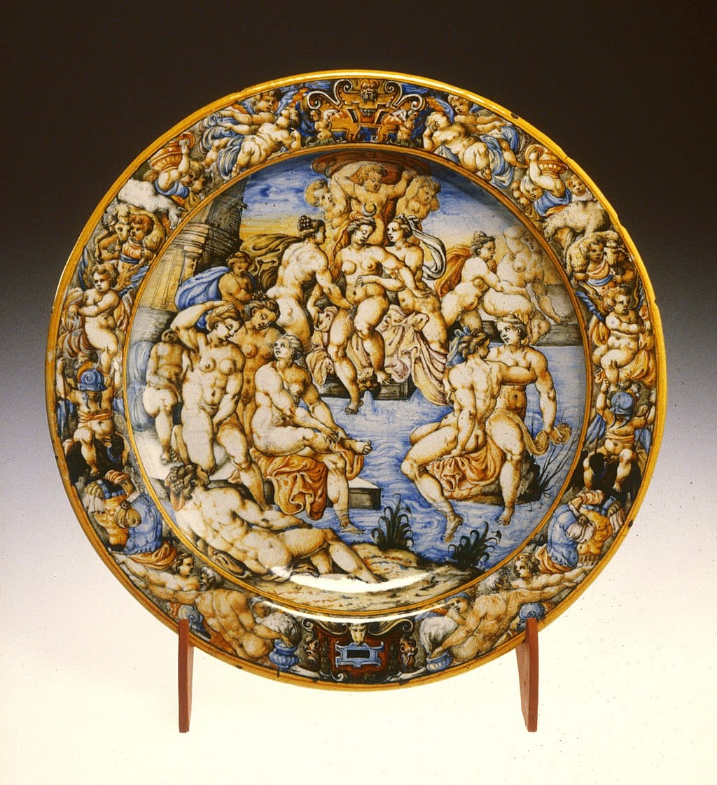 Titian painted it late in life and it would seem he was never really satisfied with it, which isn't surprising. Why did he choose this subject matter in the first place? The painting has changed owners many times. It was certainly well enough known a century later that it appears in the top right of the painting below by Flemish artist David Teniers the Younger in 1651, one of several versions like this that he painted.
