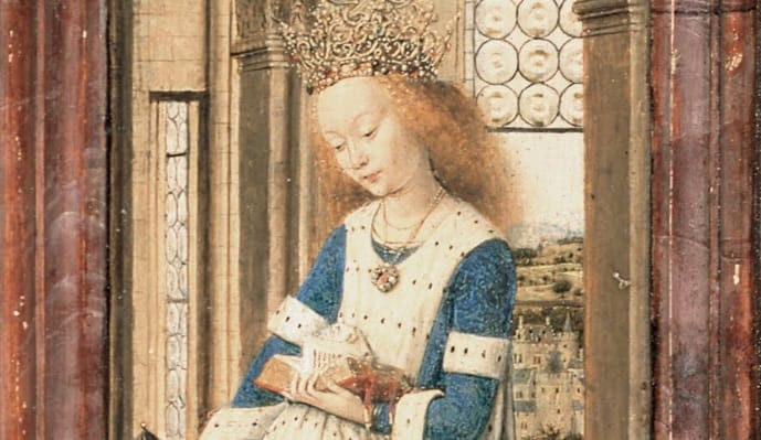 Saint Catherine is the original patron saint of philosophers and students, anorexics and bulimics, who still struggle with that wheel. She developed a popular following during the Crusades, prior to her encounter with Joan of Arc and she merits a revival today. However, many paintings and altarpieces of Saint Catherine are particularly brutal, like this French illuminated manuscript from the Book of Hours of Simon de Varie in 1455. Catharine was said to have converted 50 scholars to Christianity and, for this, she was sentenced to be executed by being broken on a wheel. But here she is beheaded first apparently.