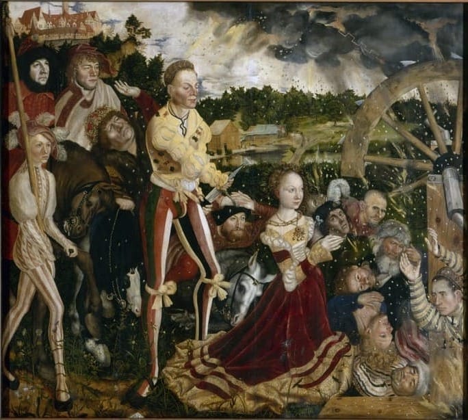 Then there's The Martyrdom of Saint Catherine of Alexandria (below); notice the execution knife? It was painted by Lucas Cranach the Elder around 1506, from the beginning of his career. He later would come under the spell of Martin Luther, whom he painted in 1529. Luther gave Cranach this sage advice: to paint his women "ten-folds more rapacious and ravenous," with "the wife-coveting man and his lover totally unclothed, committing those unspeakable acts." Was he serious?